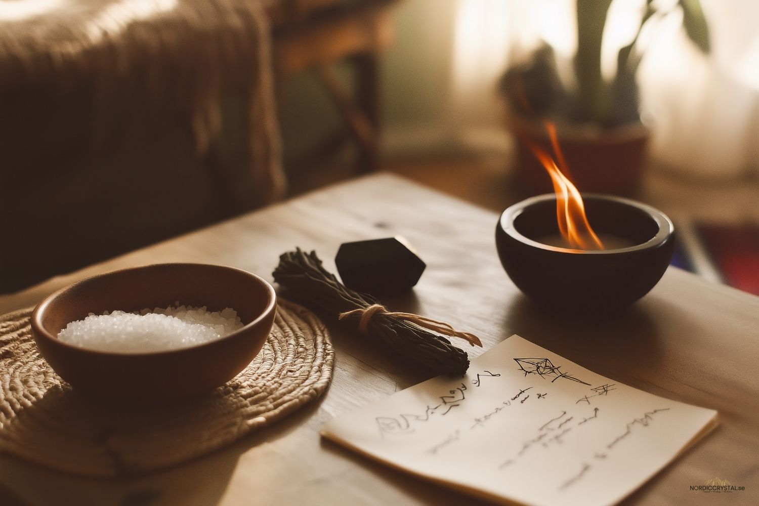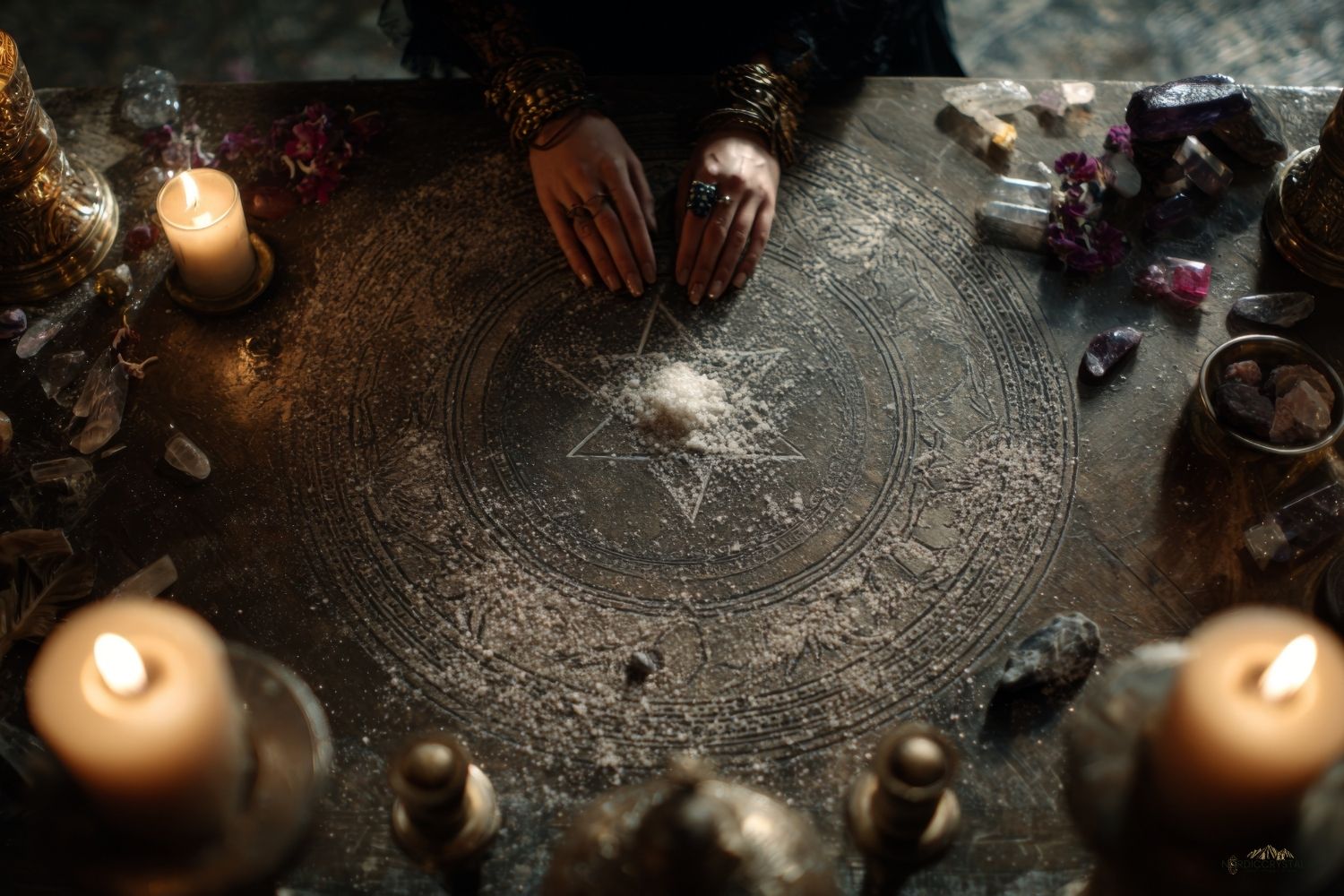 Detta är ett sätt att främst tolka och förutspå vardagsproblem och frågor som rör hus, hem och vardag. Du behöver en mörk yta, som exempel svart duk, mörk tallrik eller bord. Håll en näve salt i handen en stund och fokusera på det du undrar över. vänd handen över ytan och släpp saltet utan att titta. Vilket salt som helst fungerar, men oraffinerat salt har mest kontakt med naturen.