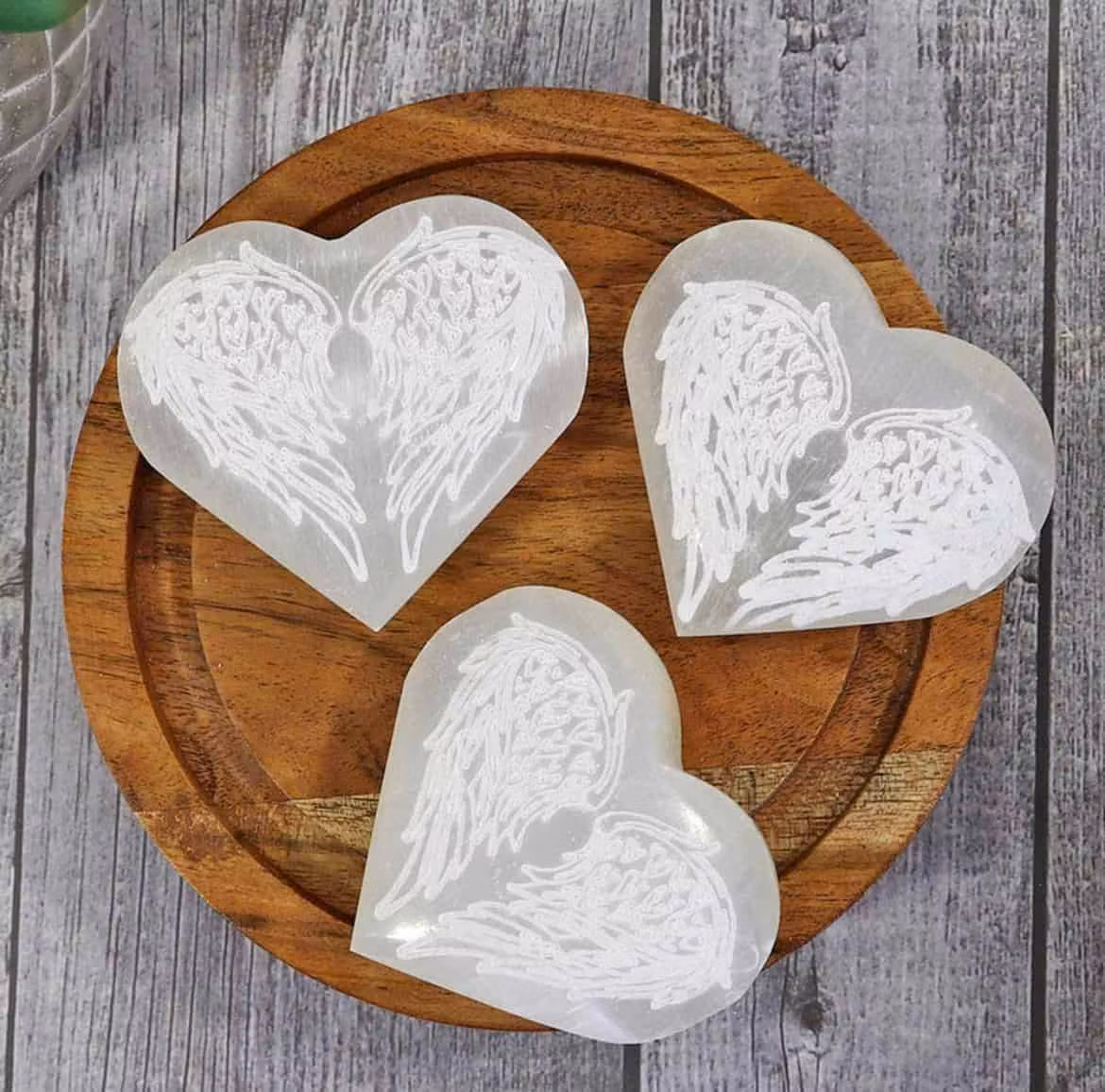 Vackra selenit hjärtan som väger ca 100 gram. Seleniten kommer från Marocko.