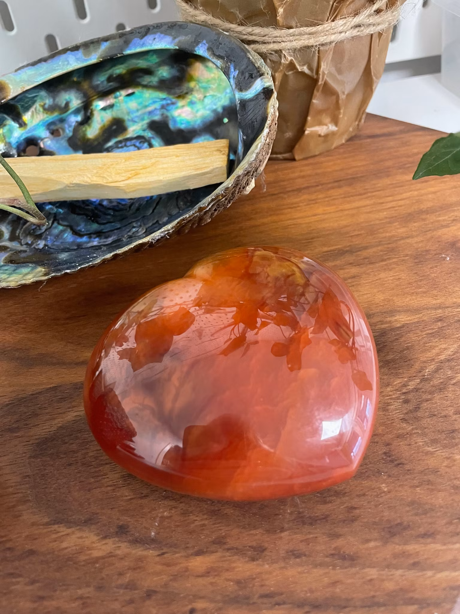 Karneol hjärta slipat. Finns två hjärtan att välja på, ni ser på bilderna vilken som är vilken. De är stora och vackra. Karneol ökar motivationen och kreativiteten. Säljs styckvis.
