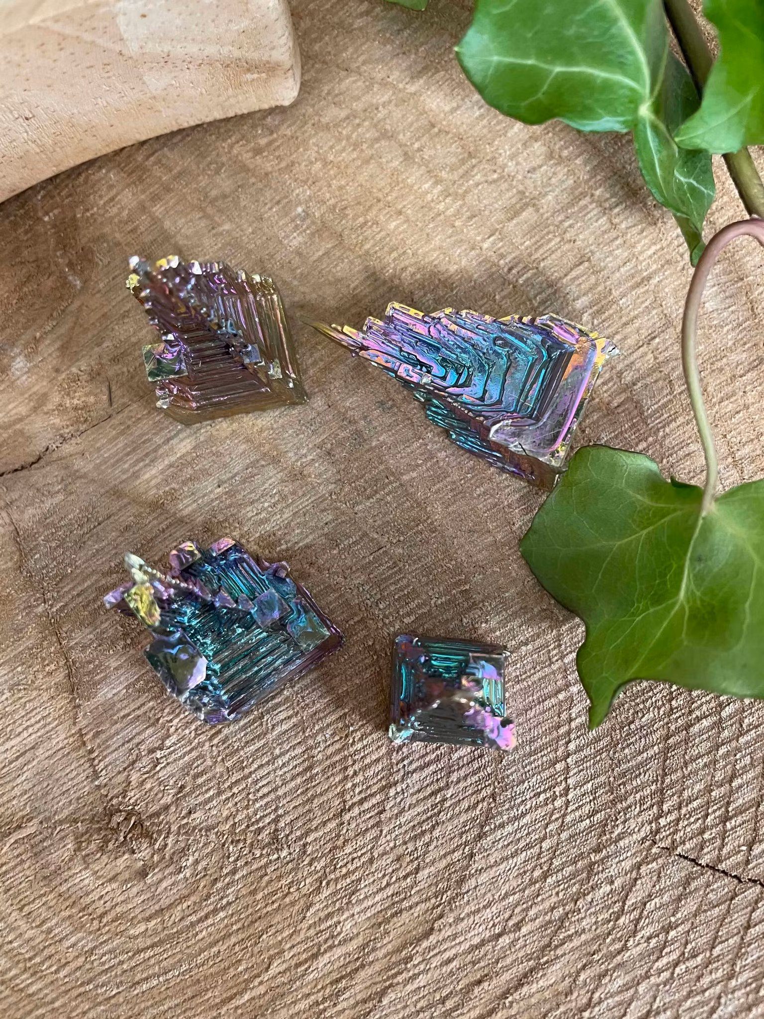 Vismut är ett metalliskt grundämne som har en låg smälttemperatur. Den hjälper med känslor av ensamhet och isolering, och ger förmågan att acceptera förändring med lugn. varje stycke väger ca 15-20 gram. Säljs styckvis.
